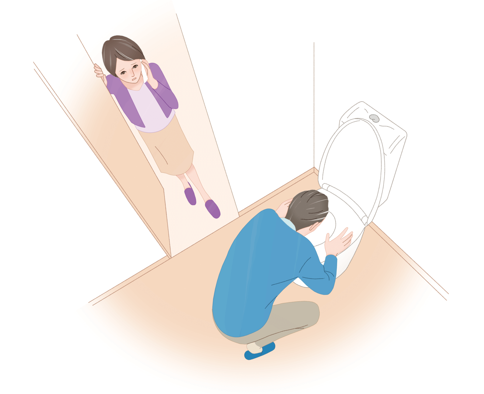 一旦そう考えはするものの、しかし繁忙期に入った仕事と、自分は健康なはずだという気持ちがブレーキとなり、ついそのまま放置してしまうHさん。次の休日、頭痛がつらくてソファで横になっていたところ、急に吐き気を覚えてトイレに駆け込んでしまいます。ドアの向こうで嘔吐している気配を感じた妻が、