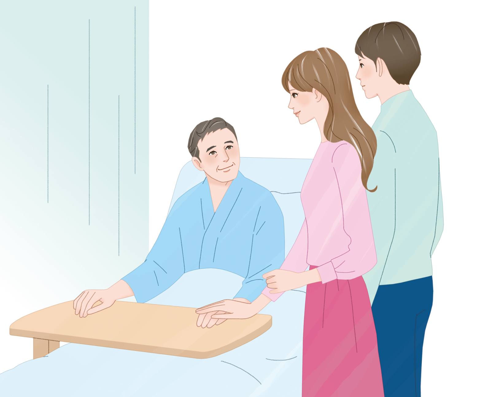 娘が着替えや日用品を抱えて訪れますが、Hさんは窓のほうに顔を向けたまま、