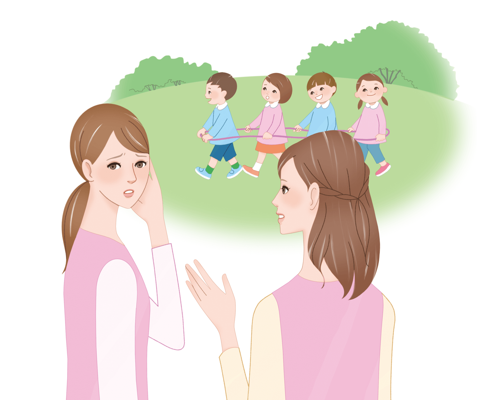 公園に着いて子供たちを遊ばせていたところ、先輩保育士がEさんに声を掛けます。