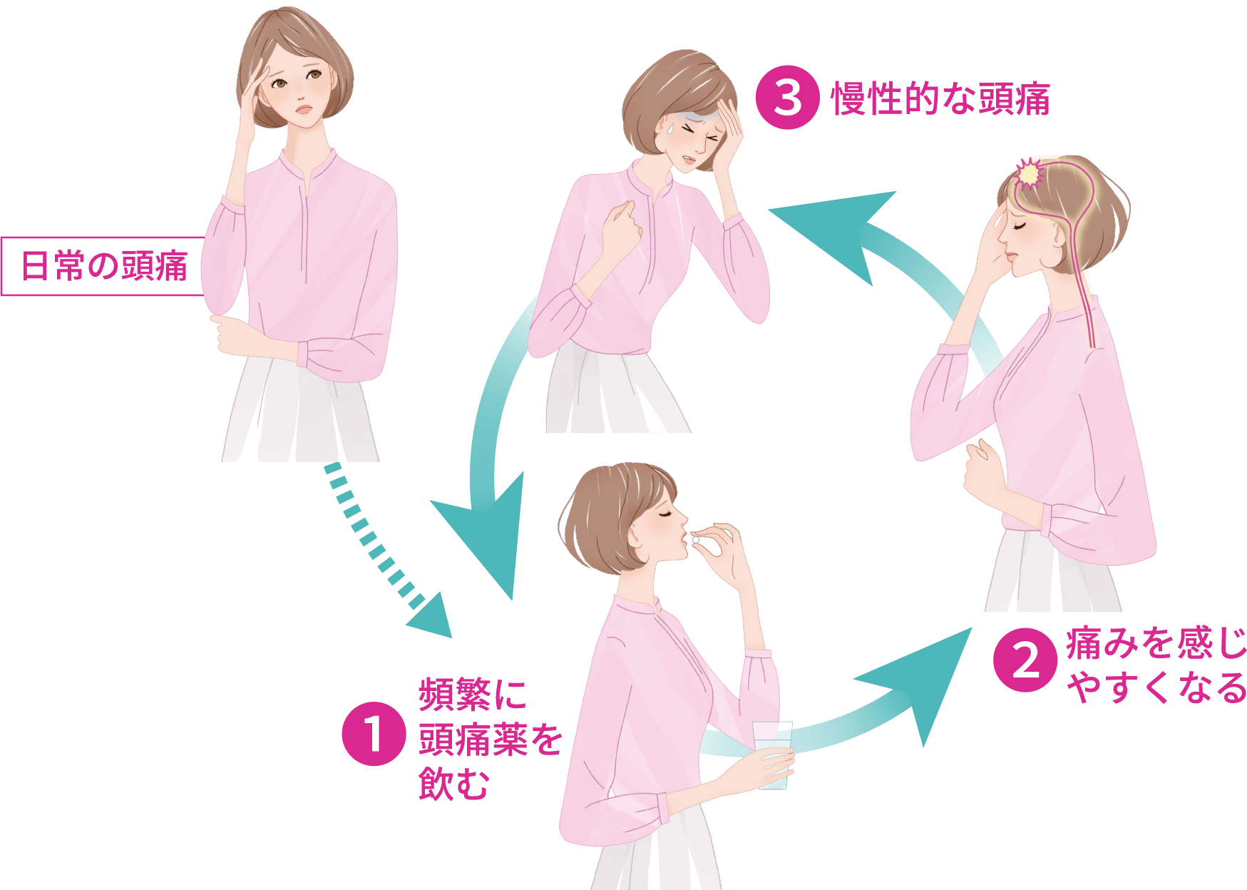 - ・今まで効いていた頭痛薬が効かなくなったように感じ、服用回数が増えている